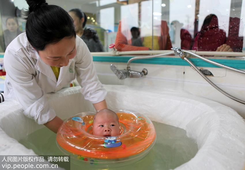点击下载本组图片 医务人员用慈母般的温暖给婴儿游泳(陈仕川/人民图片) (声明:凡带有“人民【详细】