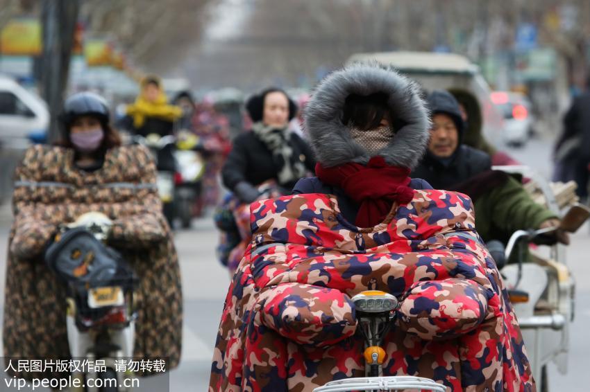 点击下载本组图片 江苏连云港市赣榆区街头,出行者“全副武装”抵御寒风。(司伟/人民图片) (【详细】