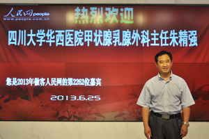 朱精强,主任医师、教授,四川大学华西医院甲状腺乳腺外科主任、硕士生导师。于1984年7月毕业于华西医科大学医学系。2009年获第6届中国医师奖。对甲状腺及乳腺疾病的诊治具有丰富经验,尤其擅长累及血管神经的晚期甲状腺癌的手术治疗,对预防喉返神经及甲状旁腺损伤具有丰富的经验。【