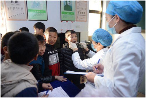 在义诊现场,拜博医护人员一边检查孩子们的口腔情况,一边根据每个孩子的口腔状况告知注意事项,同时将检查信息和口腔问题都记录下来,以便让孩子们将情况反馈给家长。经检查,不少孩子患有龋齿,龋齿属于青少年的常见病和多发病,若不进行及时治疗,病变会越来越大,还会引起严重的后果。涂氟是目前应用最广泛且有效的防龋手段之一,是在牙齿表面涂上一层氟化物,可以增加牙齿表面硬度及抗酸能力,即增强了抗龋的能力。在义诊现场,李玉芳医生表示,对于氟化物防龋齿,不建议年龄过小的孩子使用,一般是给会刷牙、能将漱口水吐尽的孩子使用。因为吞入氟化物会对人体消化道等有一定的危害。此外,李玉芳医生提醒,护卫口腔健康应该从娃娃抓起,预防龋齿的一种有效方法就是补充钙质。孕妈妈在孕期补足钙,通常孩子出生后乳牙萌出时,孩子不容易缺钙,亦有益于孩子今后的口腔健康。