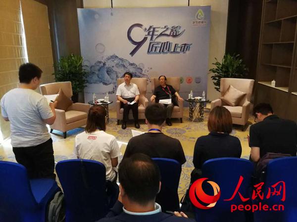 中国生物技术股份有限公司董事长杨晓明(左)与中国工程院院士赵铠(右)接受记者采访。(主办方供图)