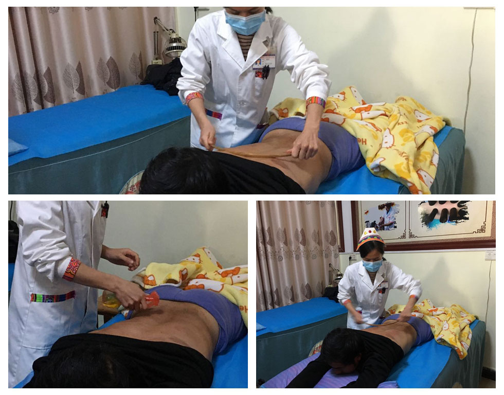 马骨刮痧是传统的自然疗法之一,它以中医皮部理论为基础,用瑶族马肋骨作为刮痧工具,在施术部位涂抹茶油,在皮肤相关部位进行同方向的刮痧,治疗时间为10-30分钟,以出痧为度。马骨本身具有药性。图为广西金秀瑶族自治县瑶医医院医生在为病人治疗。