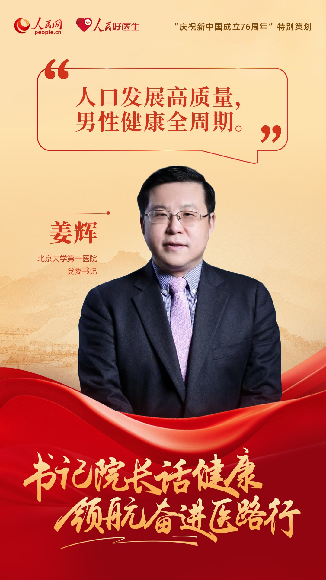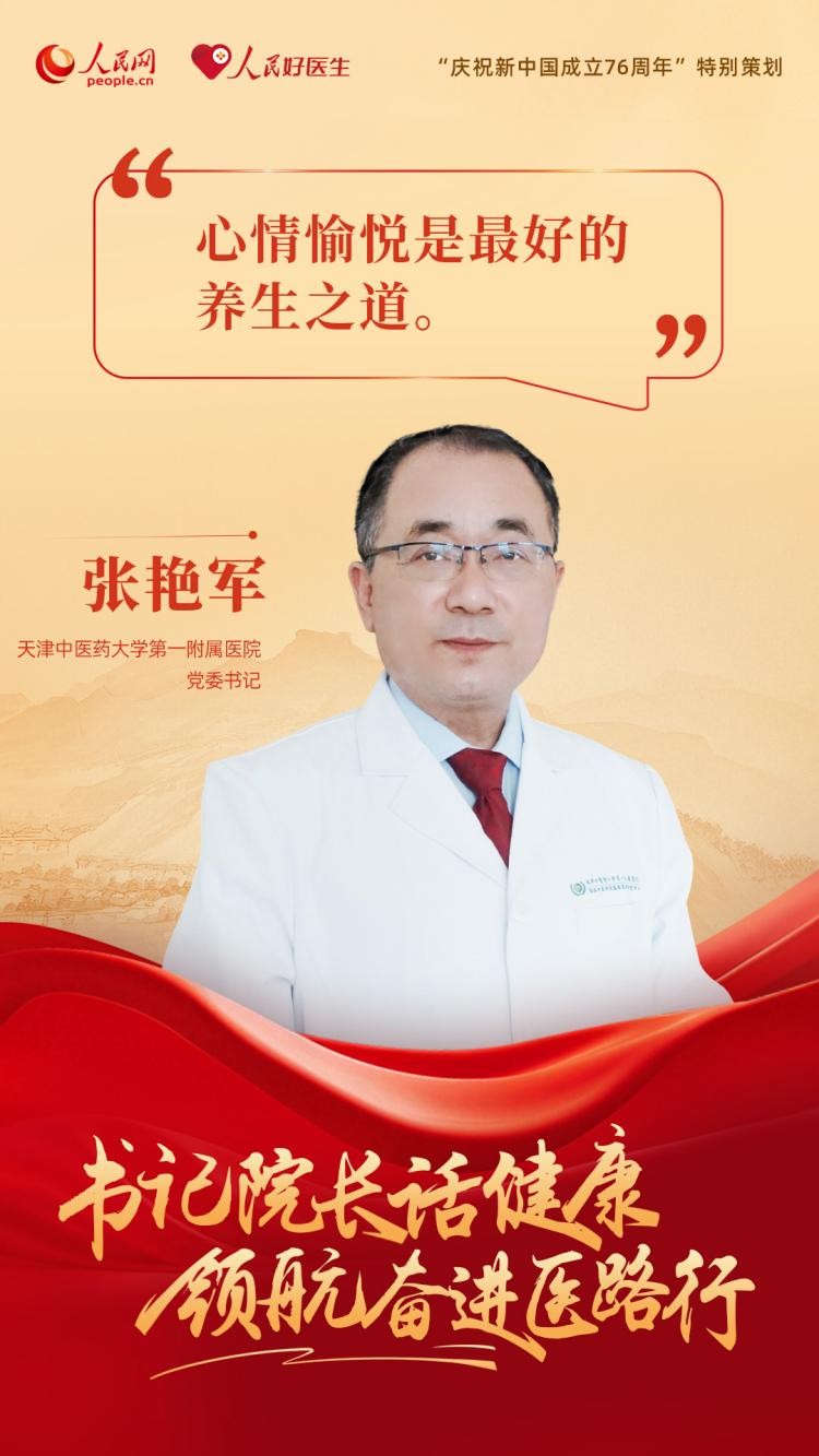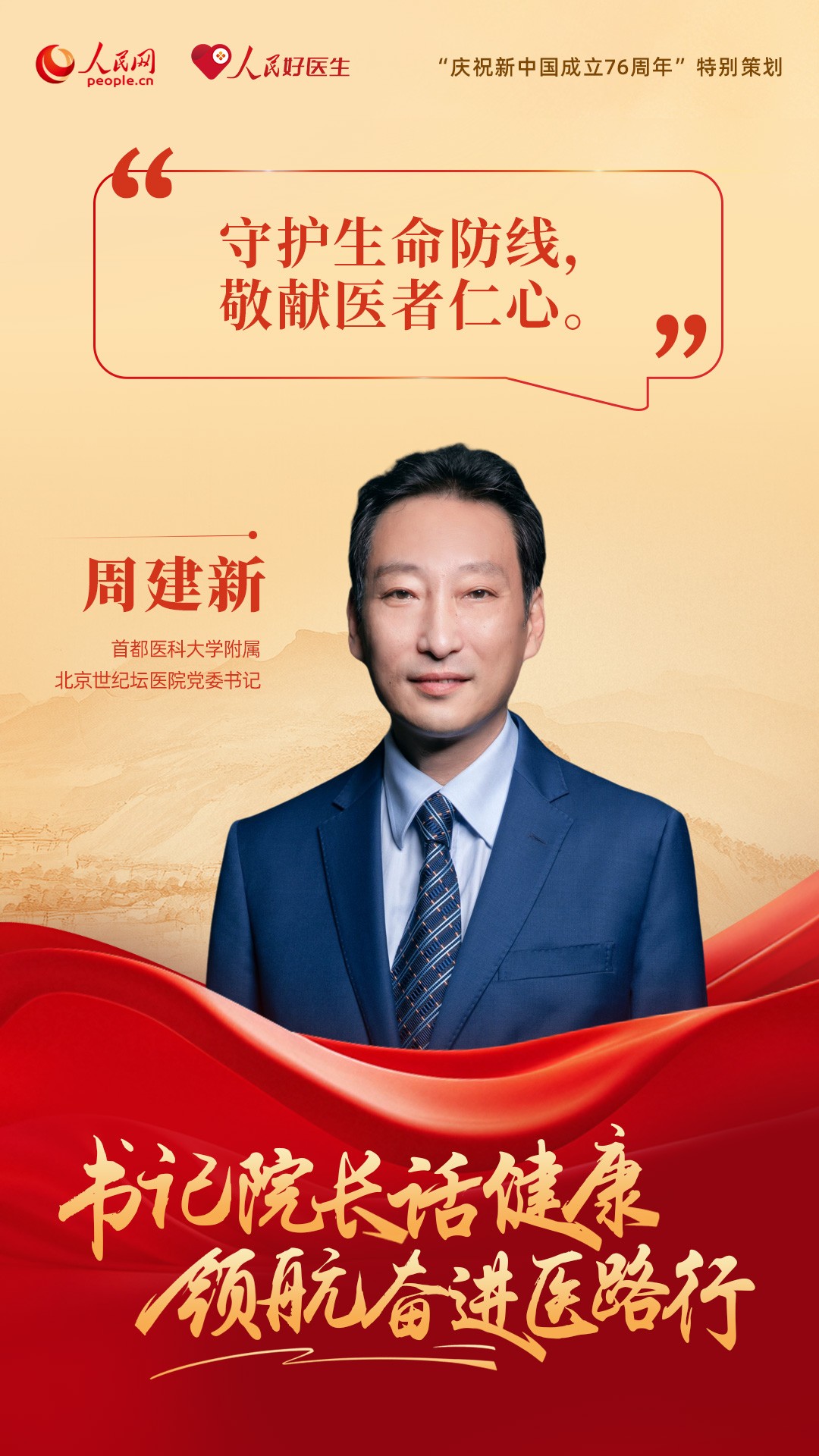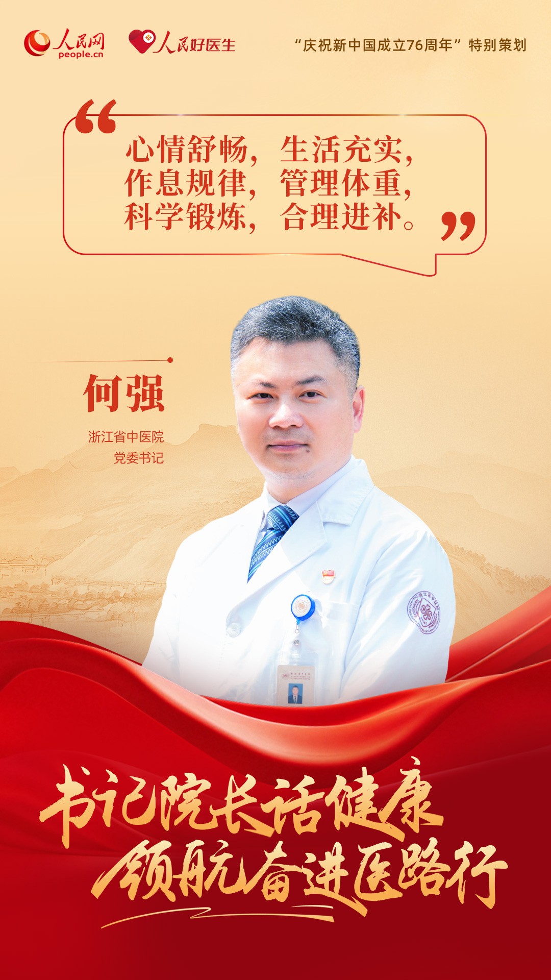 编者按:为了庆祝新中国成立76周年,人民网、人民好医生客户端特别推出“书记院长话健康 领航奋进医路行”策划,邀请19位全国公立三甲医院党委书记与院长分享“医路”前行中的医者初心与健康心得。