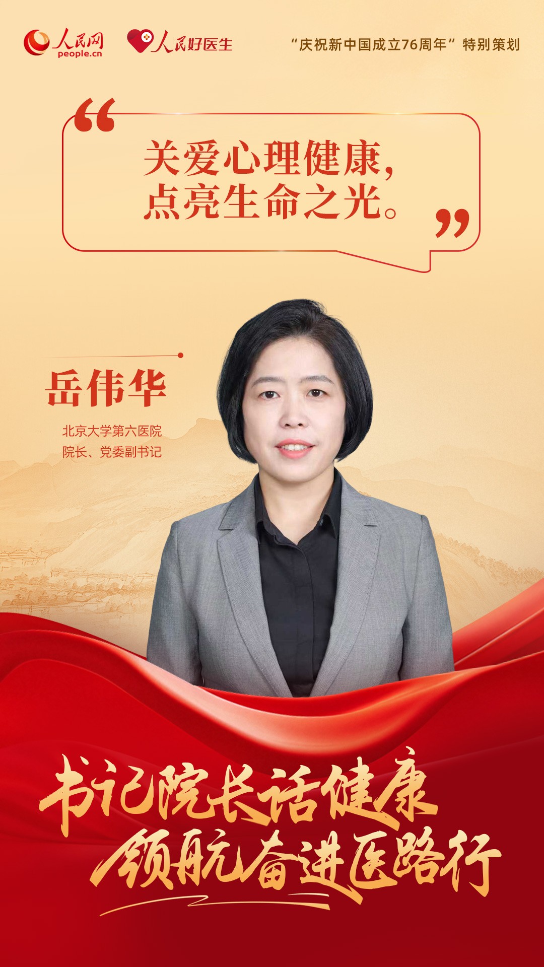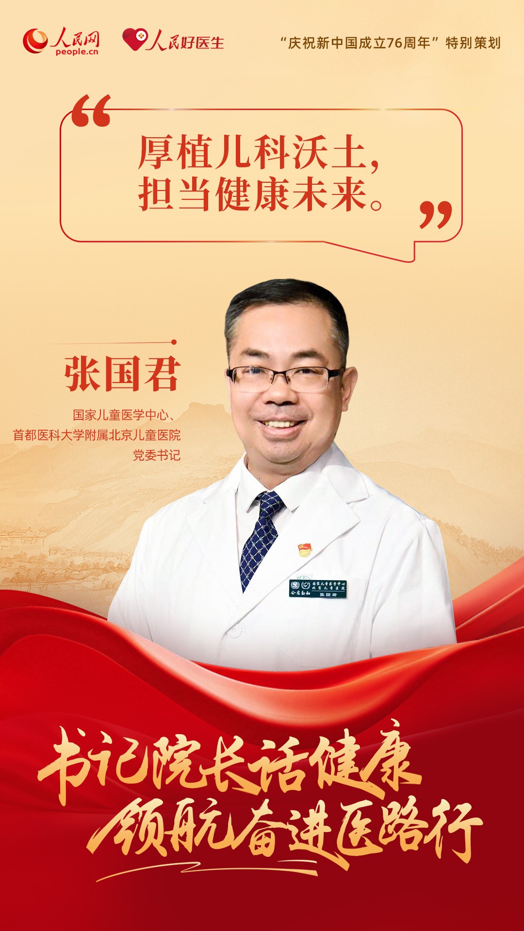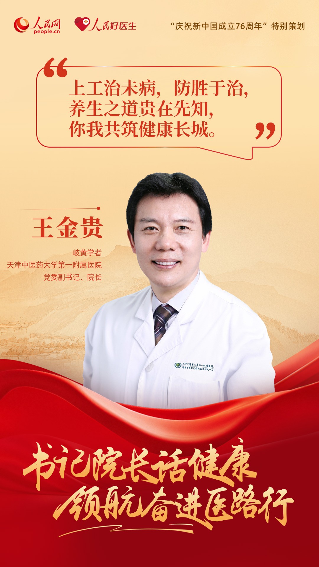 编者按:为了庆祝新中国成立76周年,人民网、人民好医生客户端特别推出“书记院长话健康 领航奋进医路行”策划,邀请19位全国公立三甲医院党委书记与院长分享“医路”前行中的医者初心与健康心得。